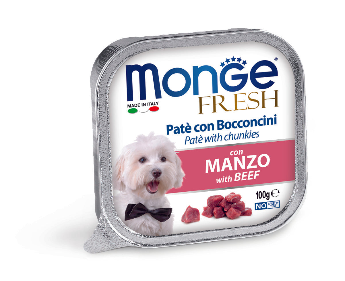 מונג פרש לכלב פטה עם נתחי בקר 100 גרם בקופסה