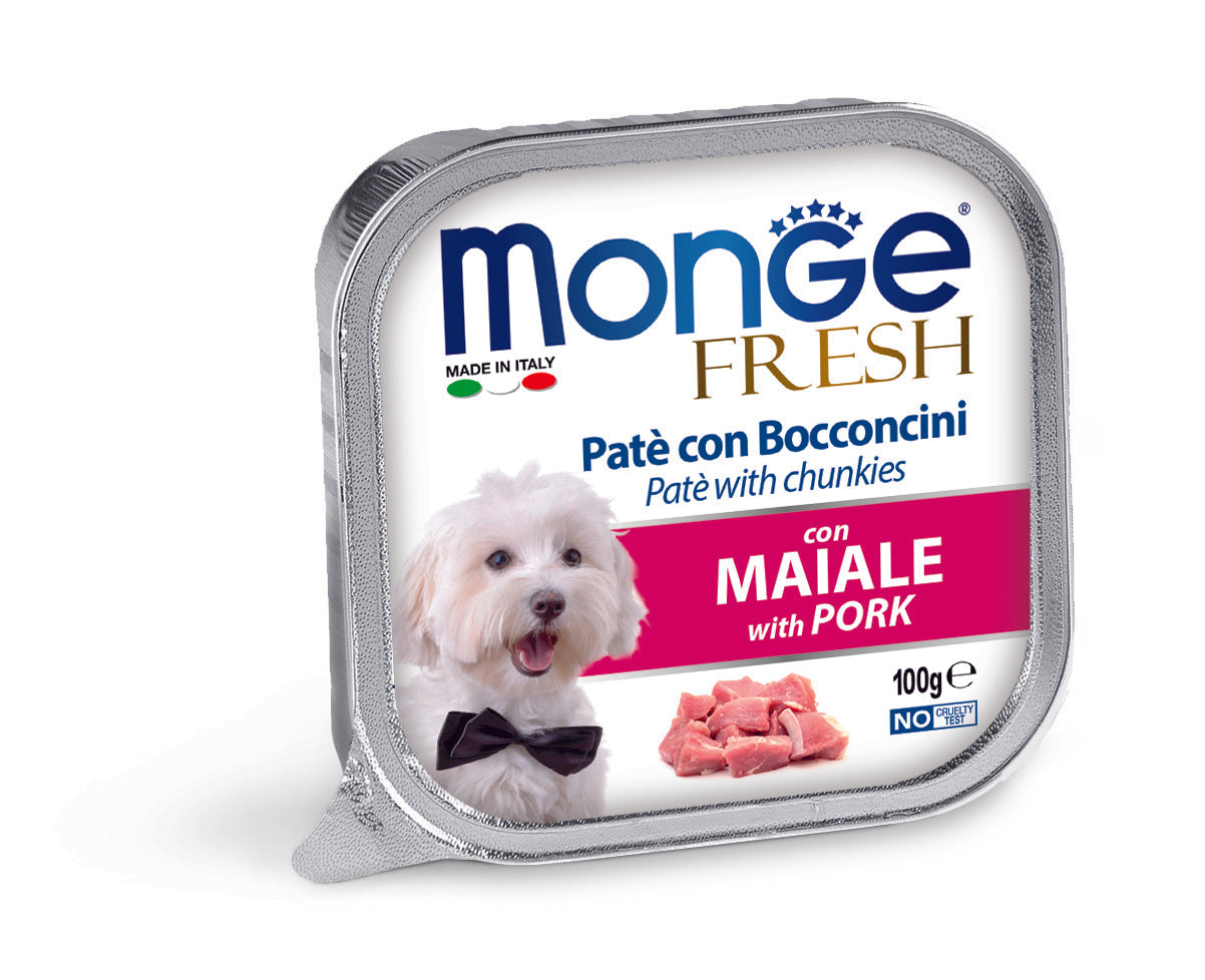 מונג פרש לכלב פטה עם נתחי חזיר 100 גרם בקופסה