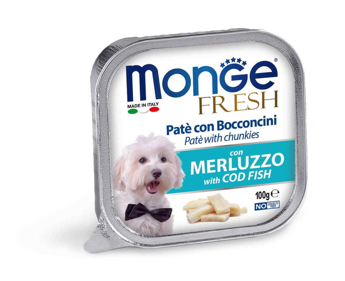 מונג פרש לכלב פטה עם נתחי דג בקלה 100 גרם בקופסה