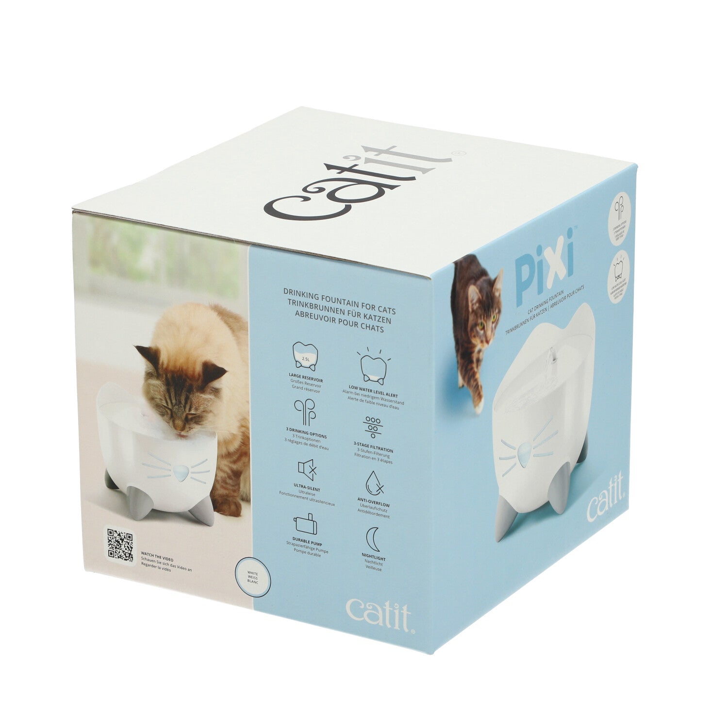 קט איט פיקסי מזרקת מים לחתול לבן ונירוסטה 2.5 ליטר